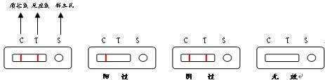 3.无效结果:10分钟后未出现任何红线,表明检测结果无效,须重新实验。
